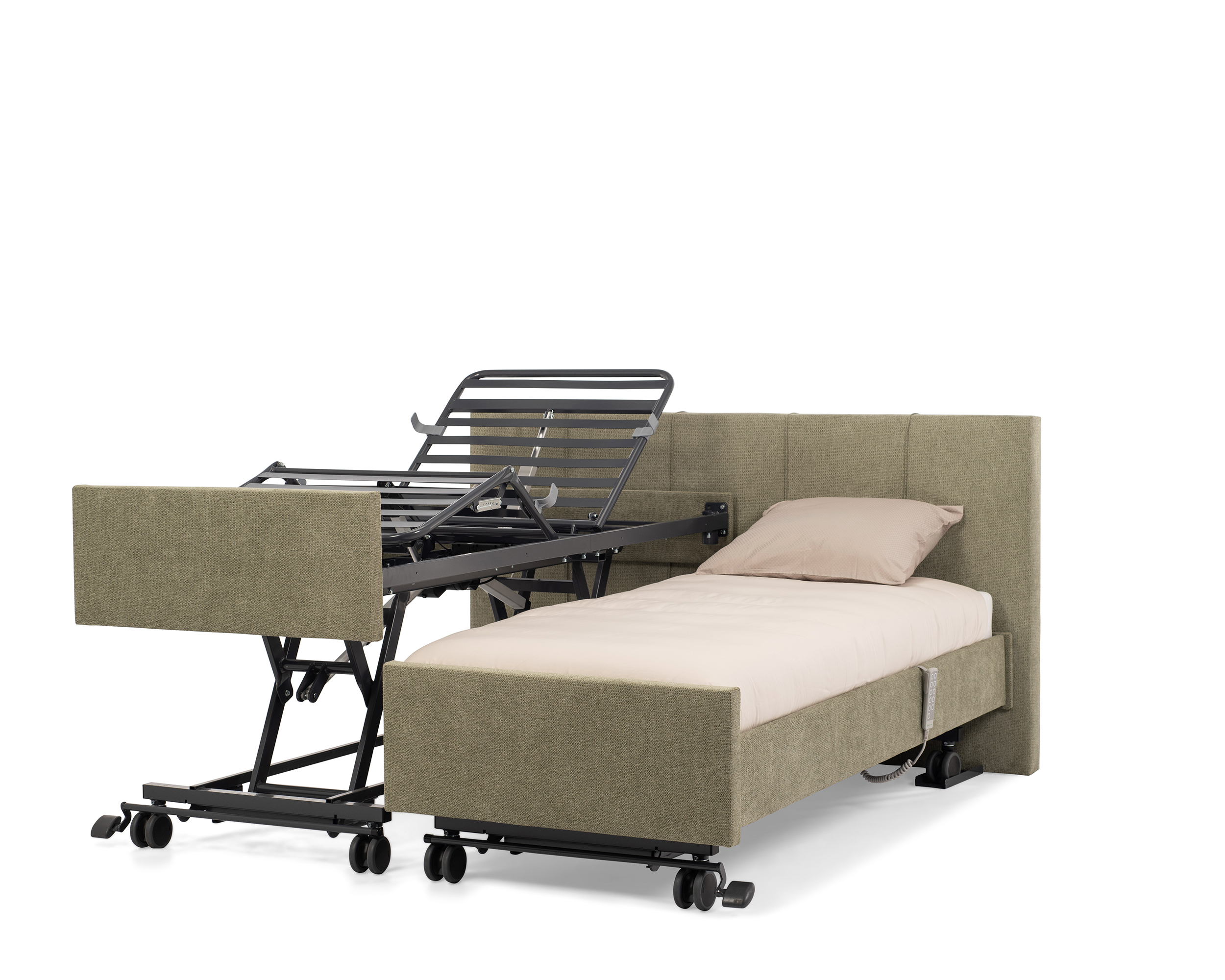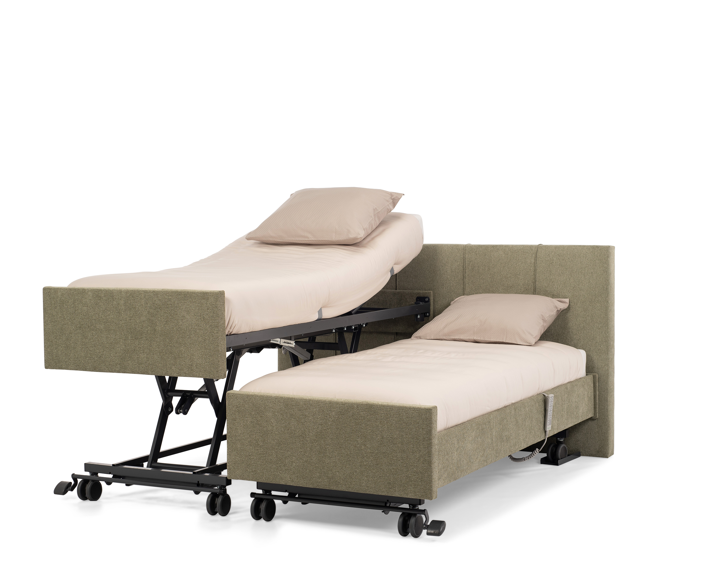 - Eenvoudige hoog-laagfunctieMet één druk op de knop verstel je het bed van een lage instaphoogte tot een werkhoogte die rugvriendelijk is voor verzorgers.