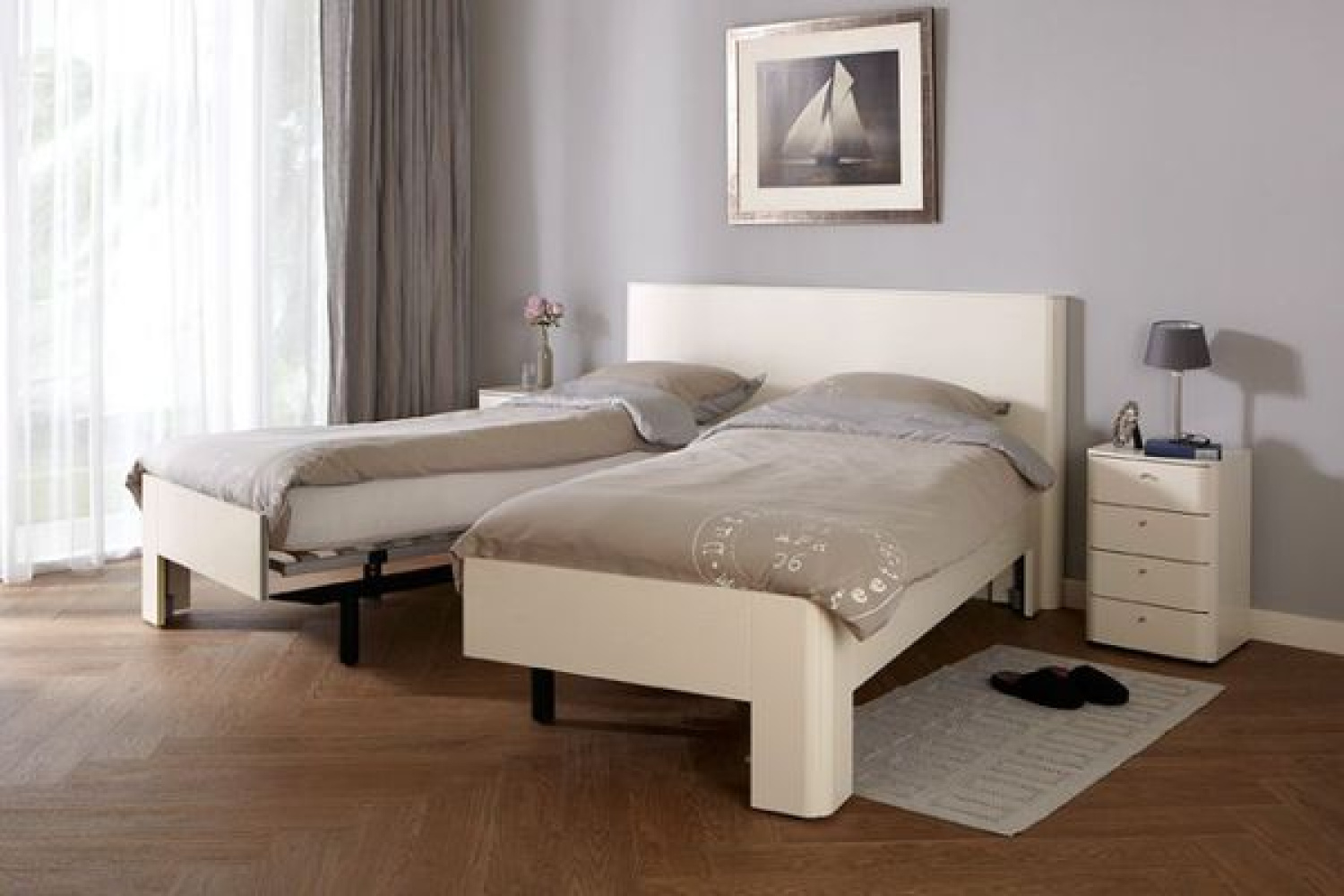 Dankzij het doordachte ontwerp wordt het uitvoeren van huishoudelijke taken, zoals stofzuigen onder het bed of het bed opmaken, aanzienlijk eenvoudiger. Maar het Diamant ledikant biedt vooral uitkomst wanneer er verzorging aan bed nodig is. Door het bed snel en gemakkelijk uit elkaar te schuiven, ontstaat er extra ruimte voor beweging en zorgverlening.